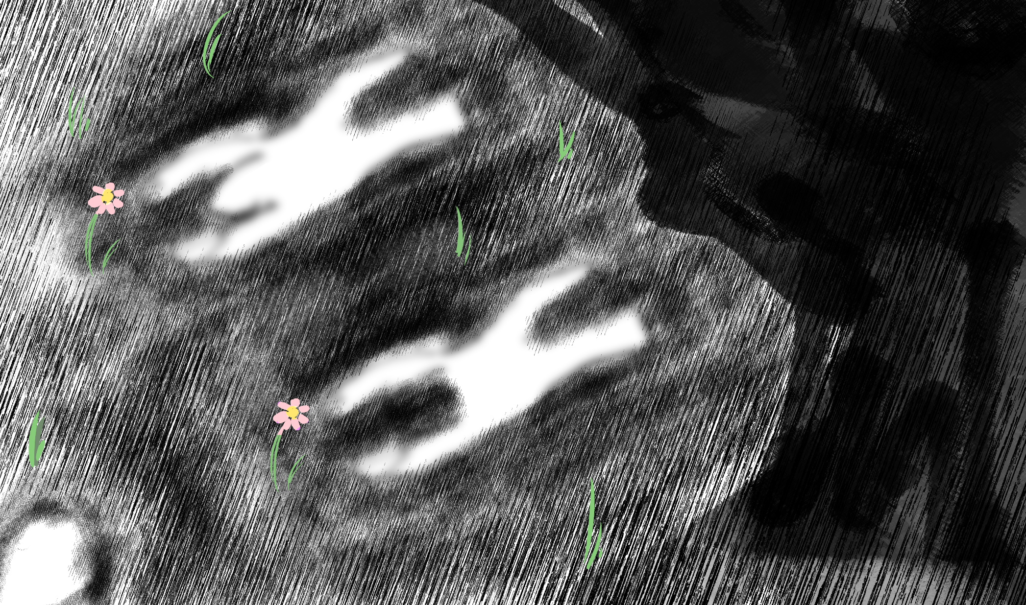 억지로라도 힘주어 버티고있던 다리는 그녀의 정신이 끊어짐과 동시에 힘이 빠져 부모님의 자국 위로 주저앉았다. 부모님의 그을림 자국 위쪽으론, 그녀의 머리색상과 닮은 꽃 두송이가 피어있었다.